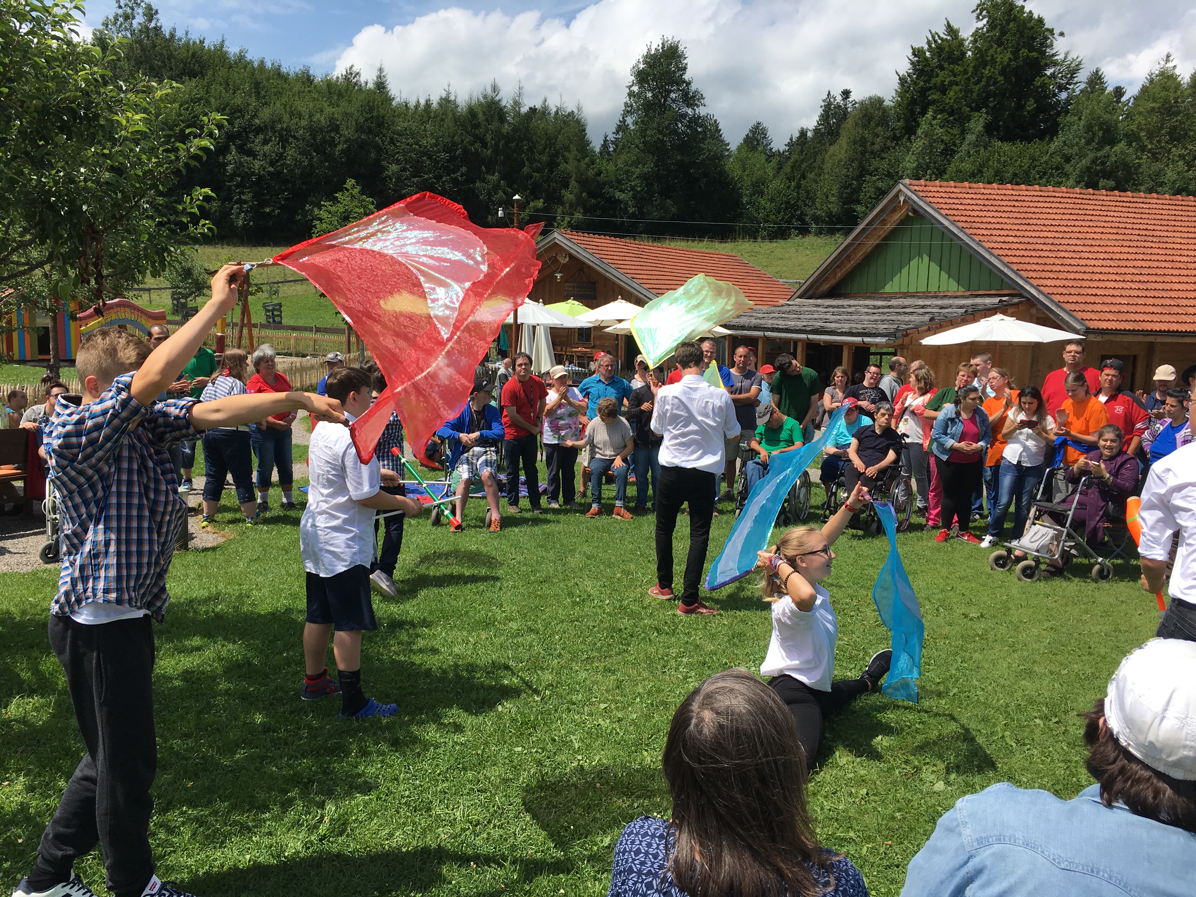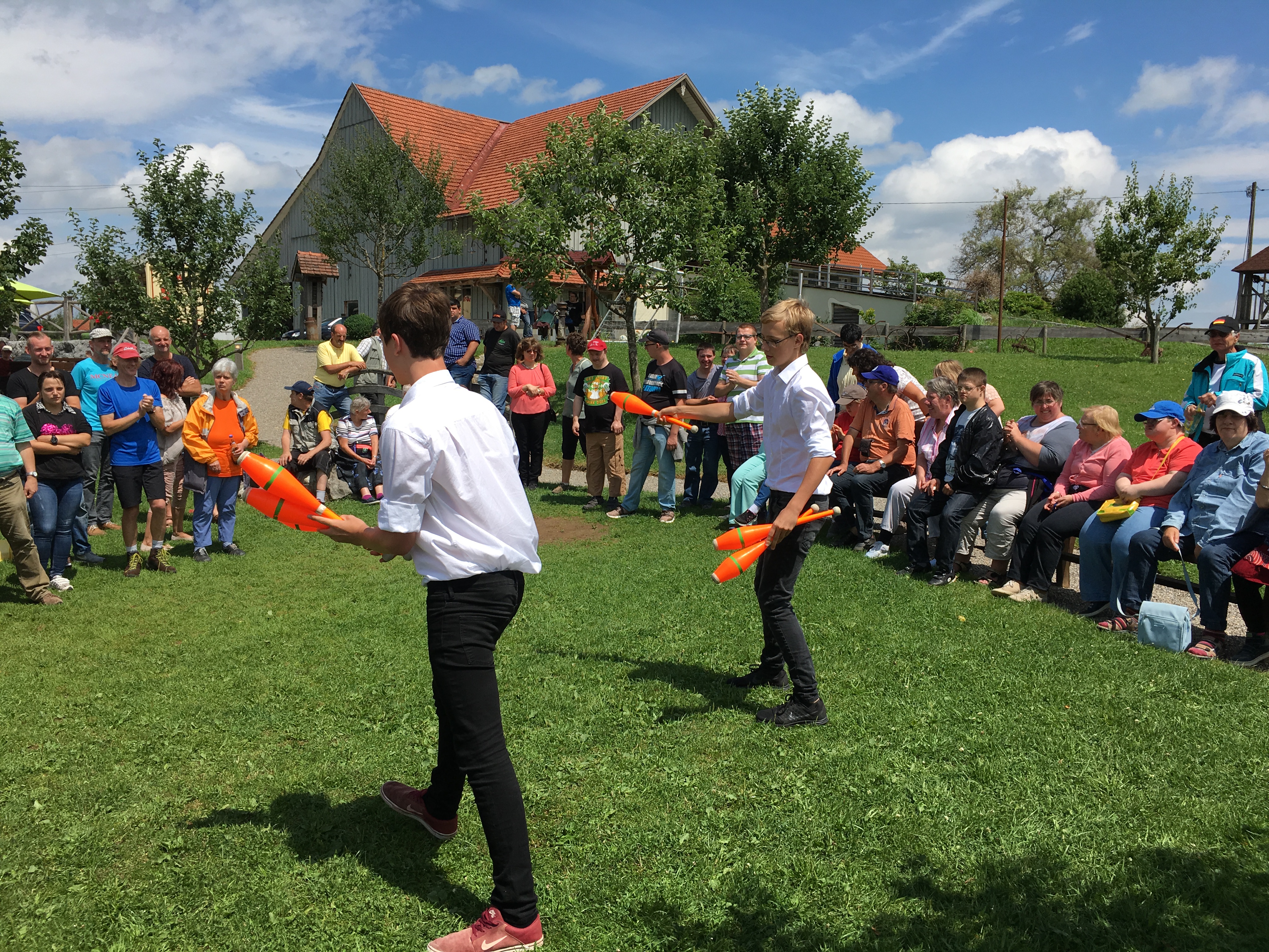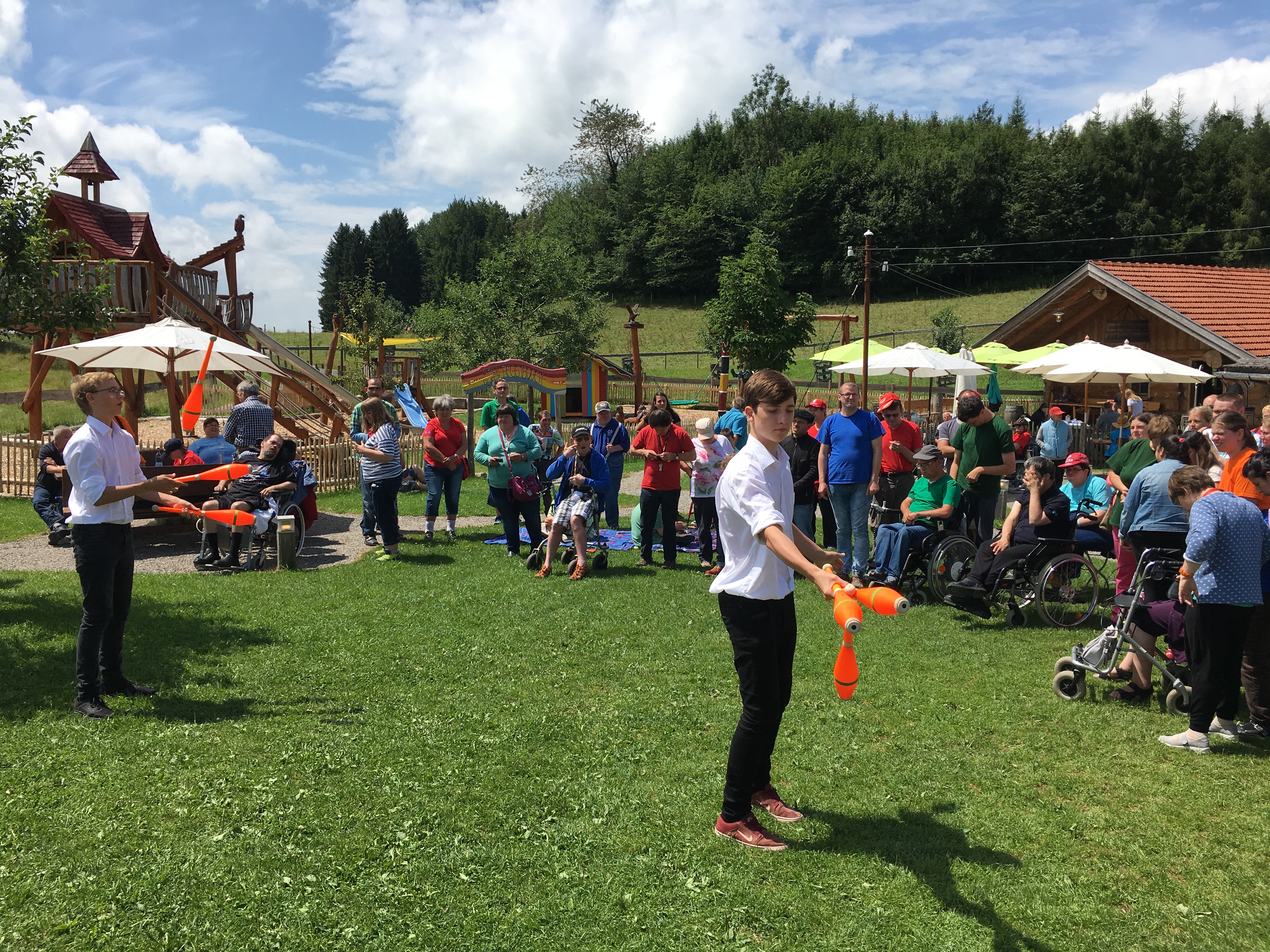 Auf ins Allgäu. Die Werkstätten der OWB feierten ihr Sommerfest. Eine Jonglage-Show unter freiem Himmel.
