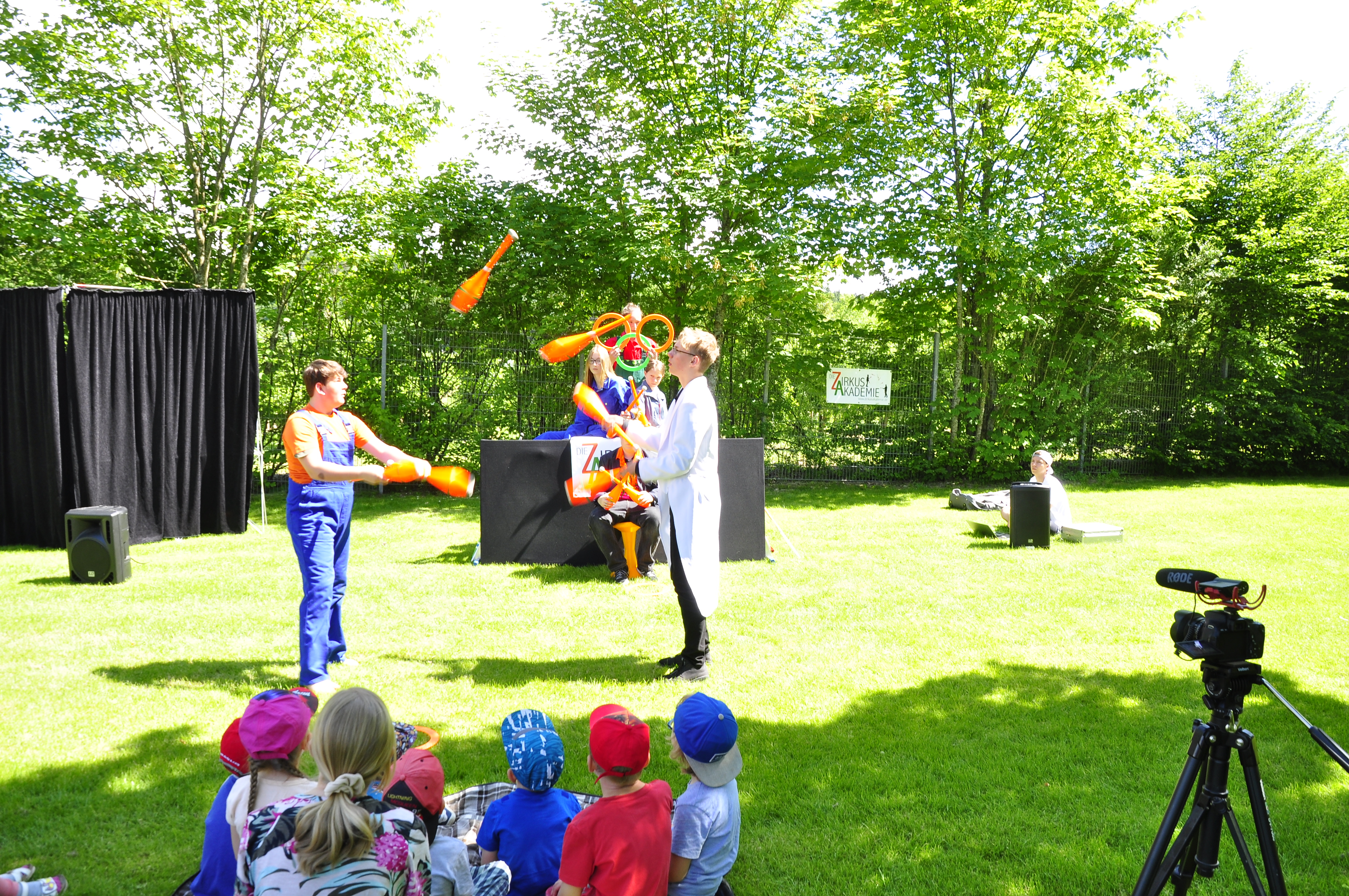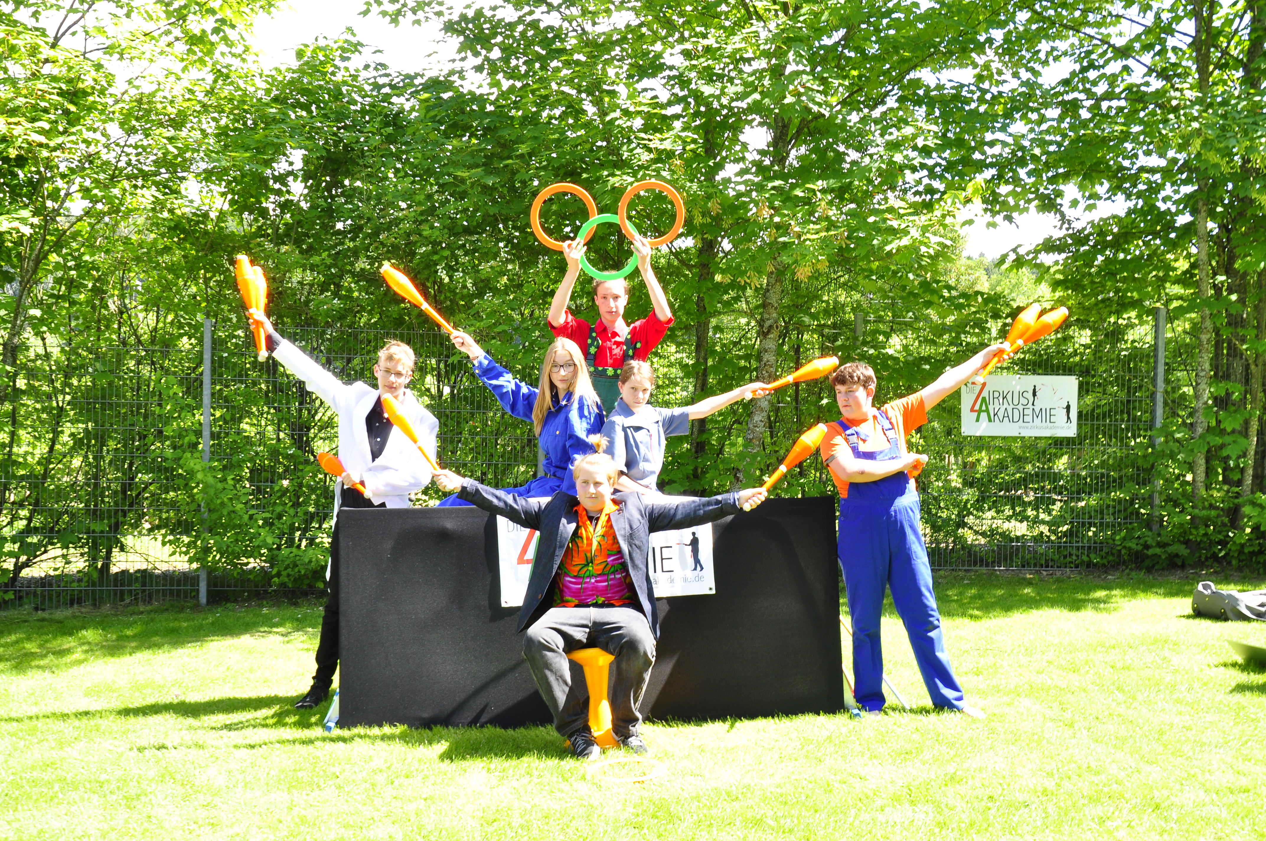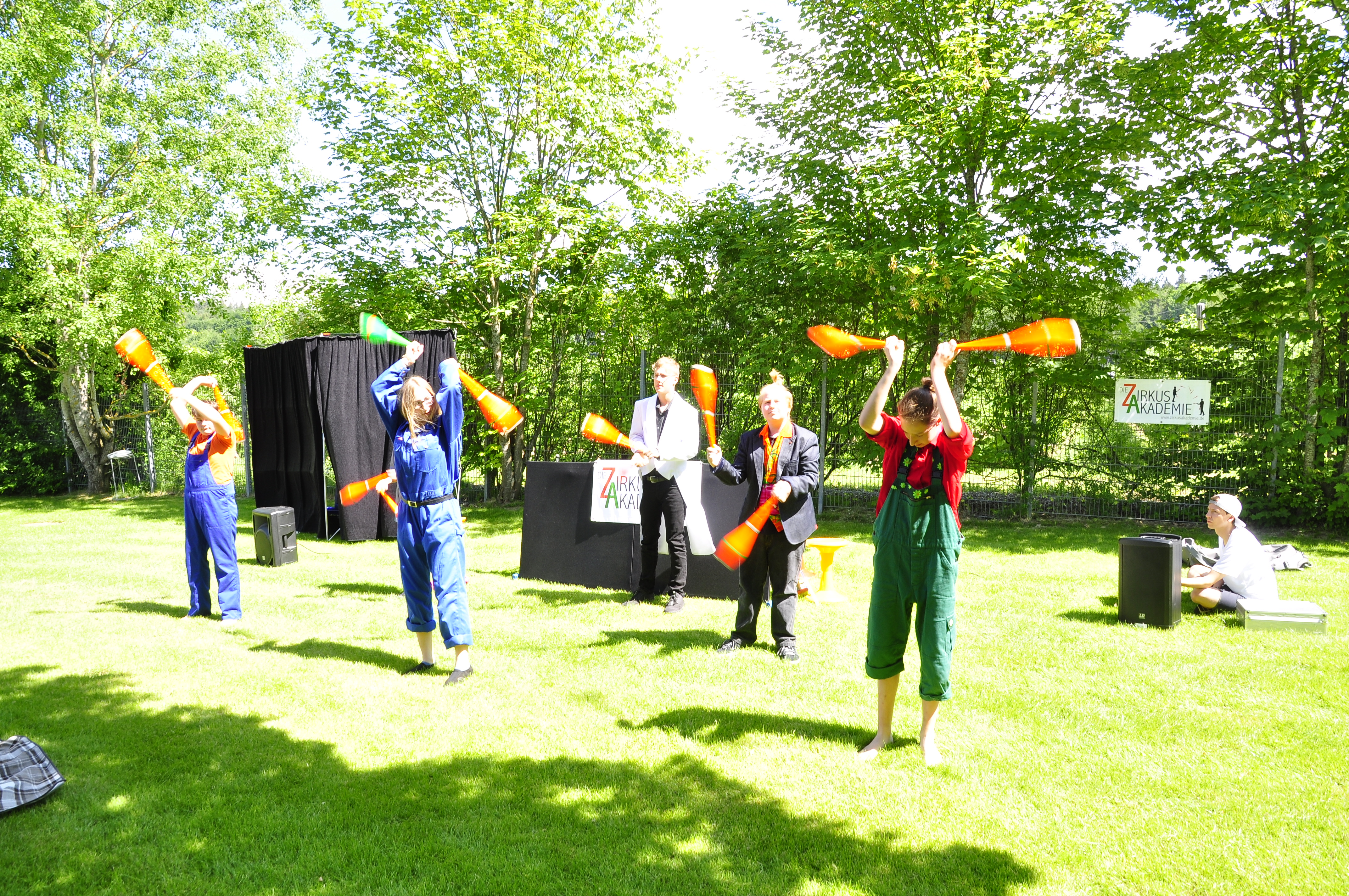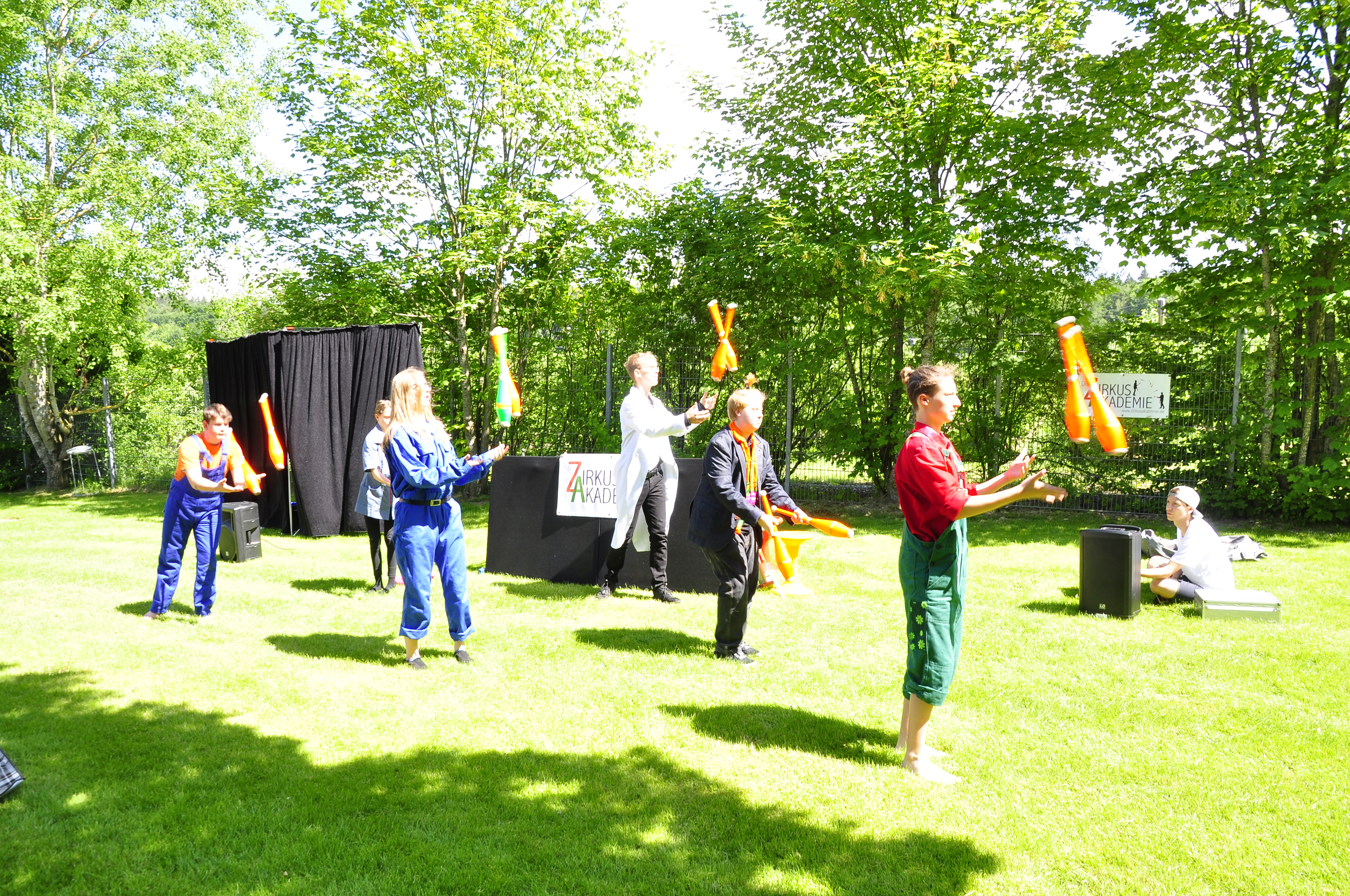 Die Zirkus-Tour-Gruppe im Bädle in Obereisenbach. Eine Vorstellung für den VauDe Kindergarten und Besucher.