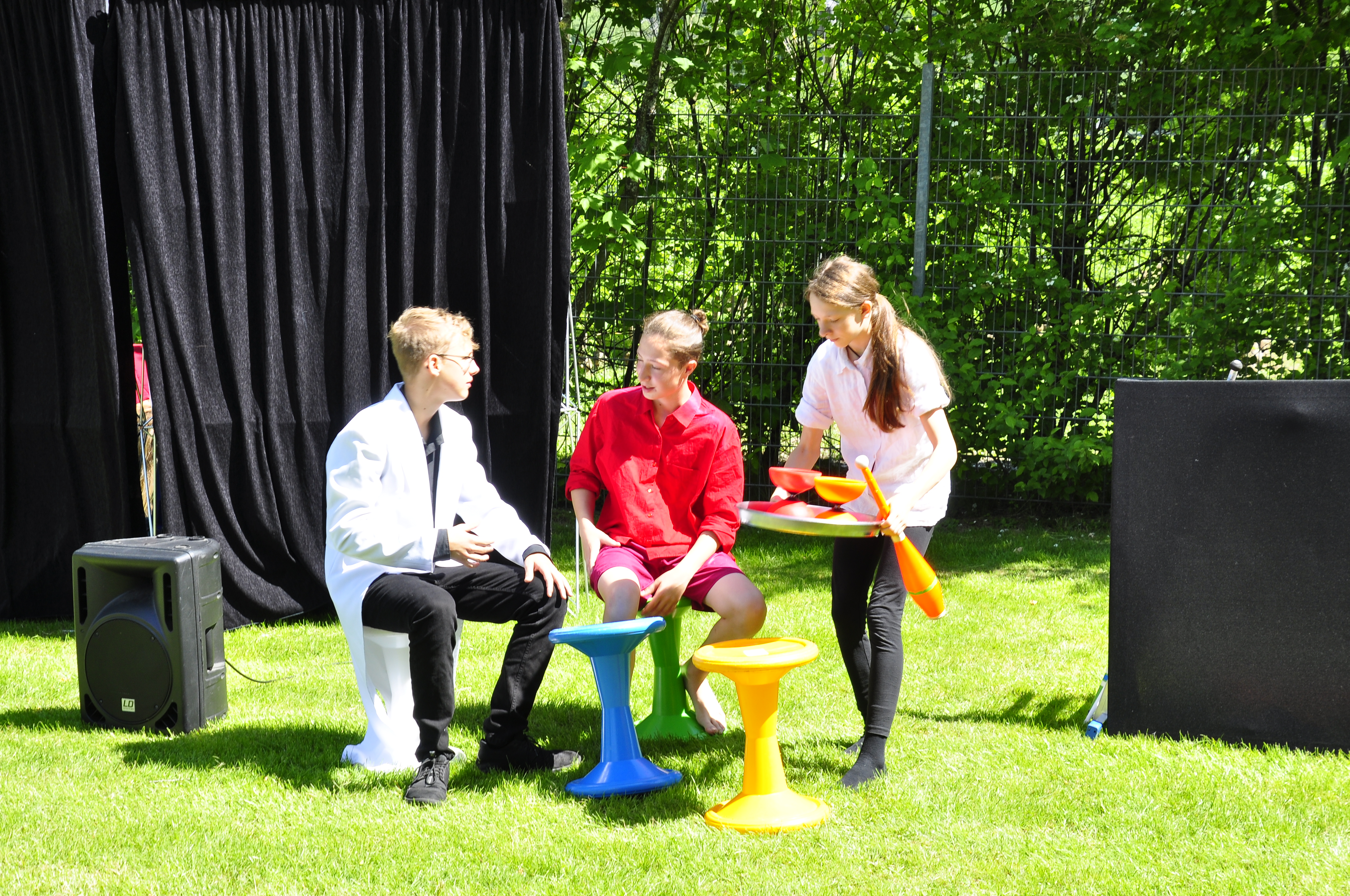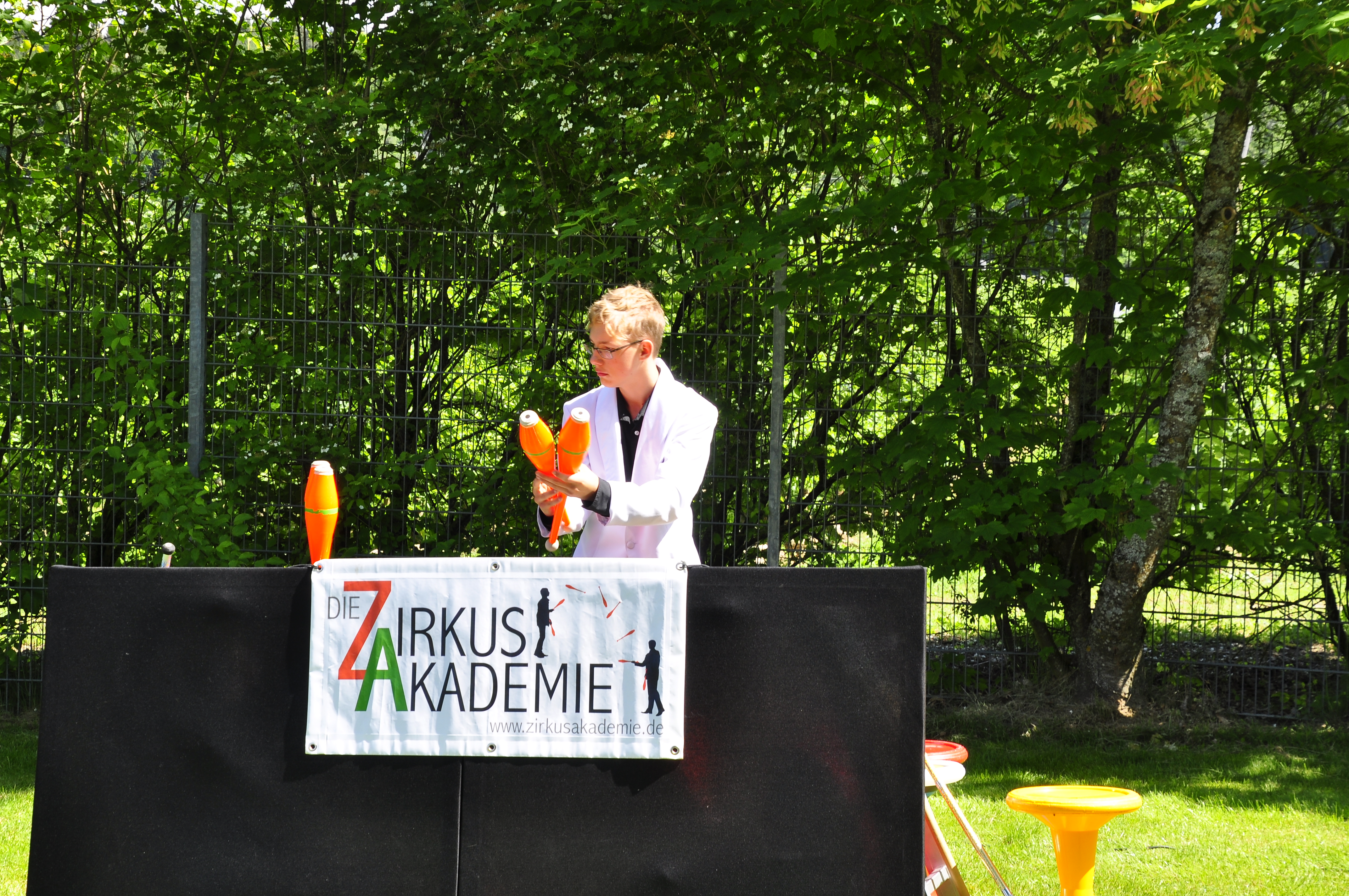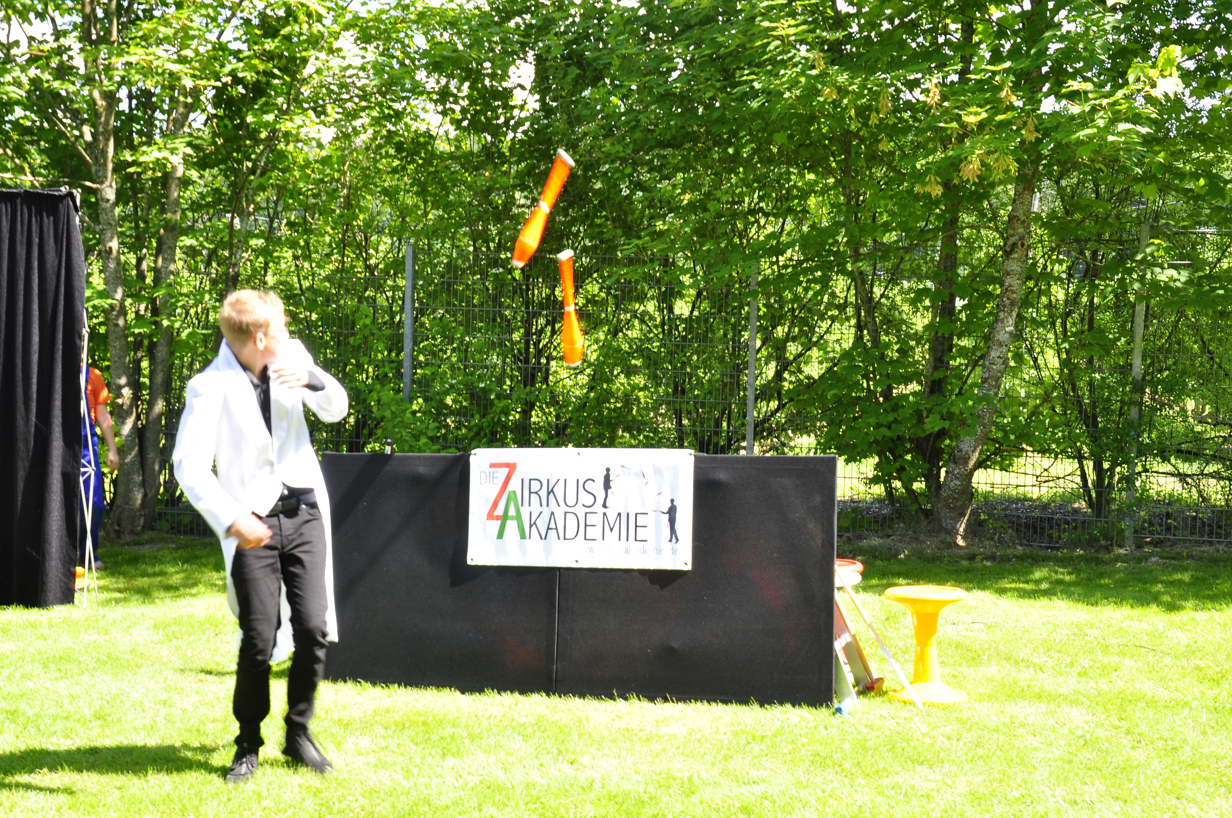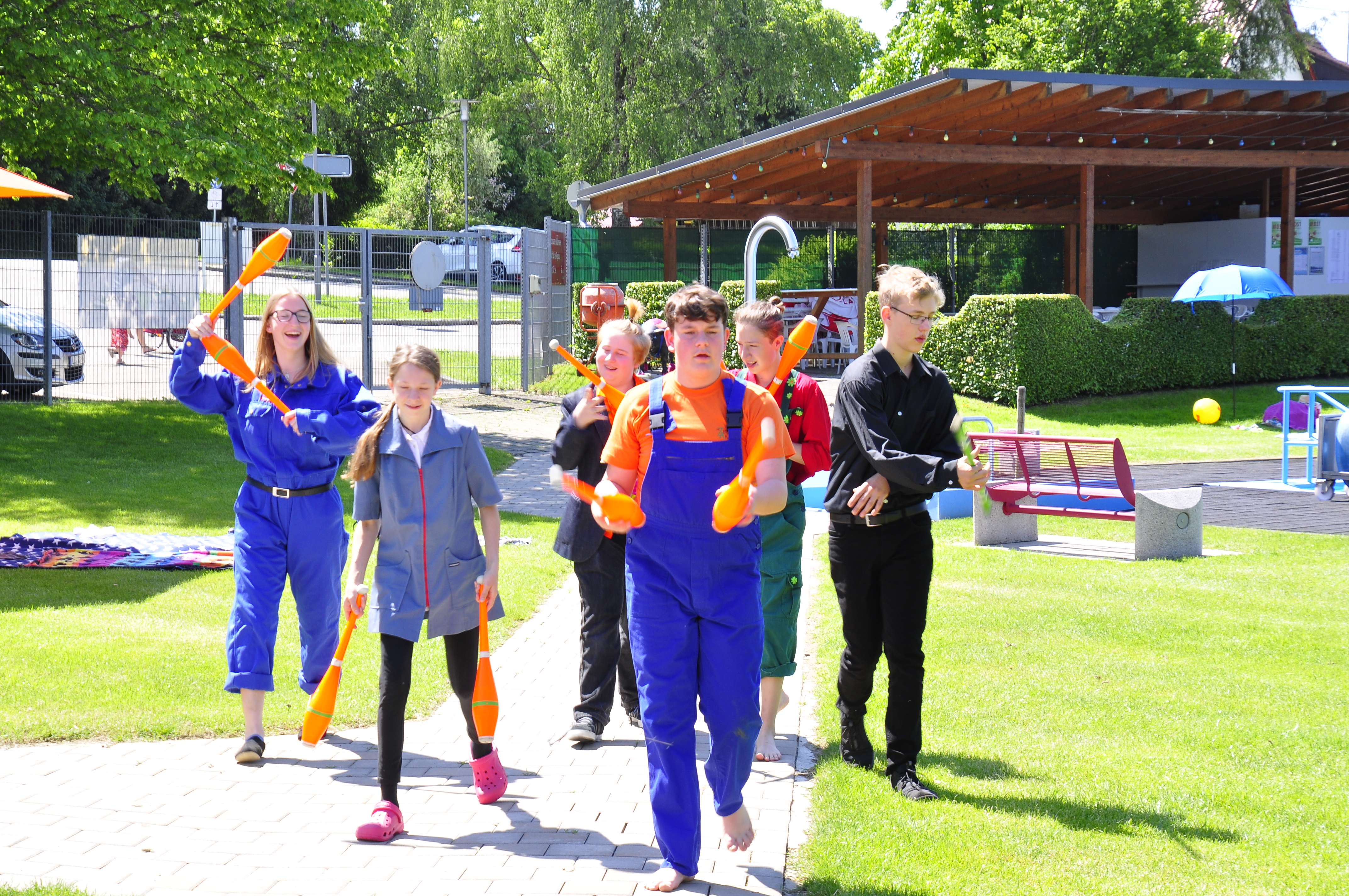 Die Zirkus-Tour-Gruppe im Bädle in Obereisenbach. Eine Vorstellung für den VauDe Kindergarten und Besucher.