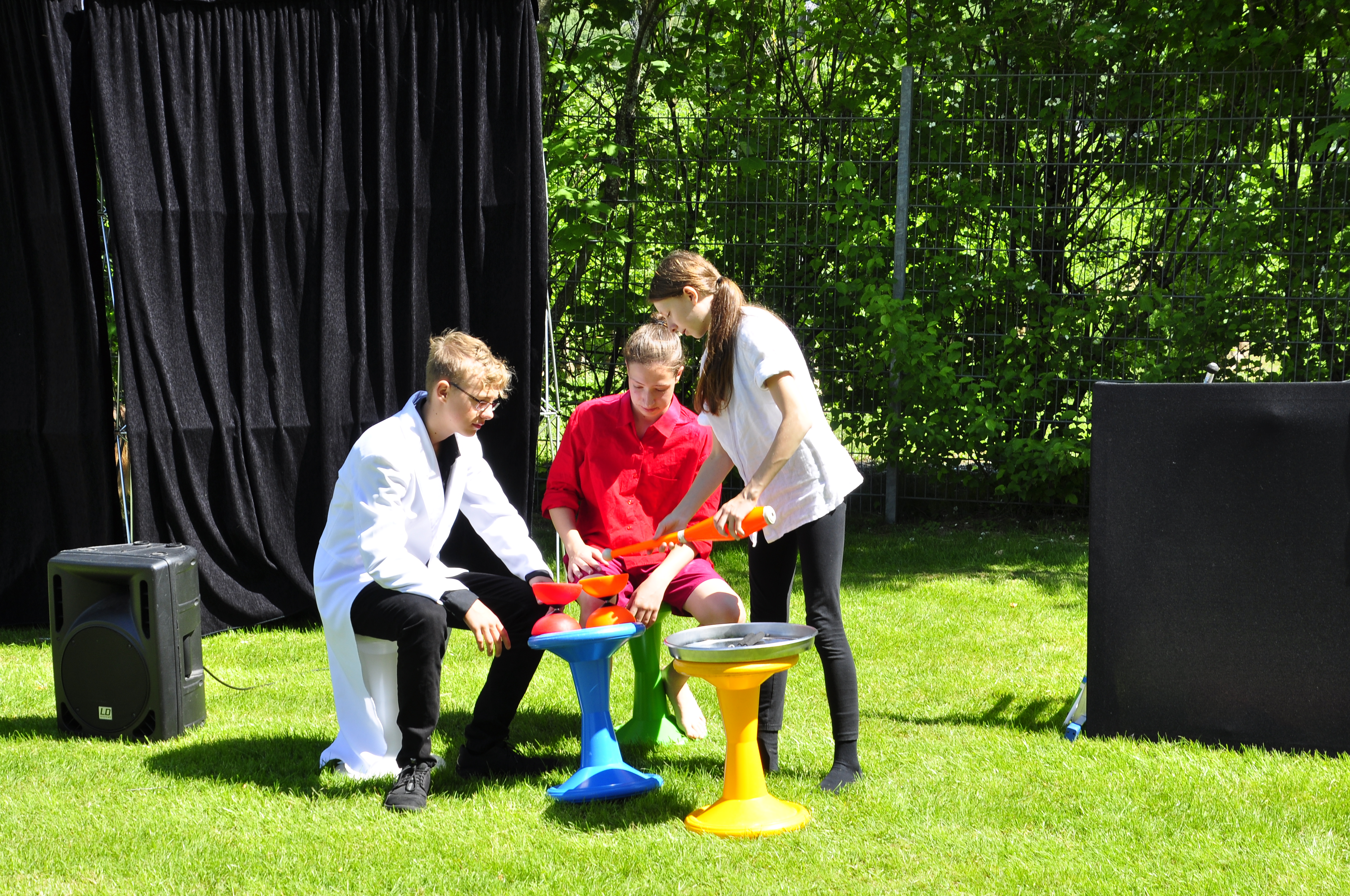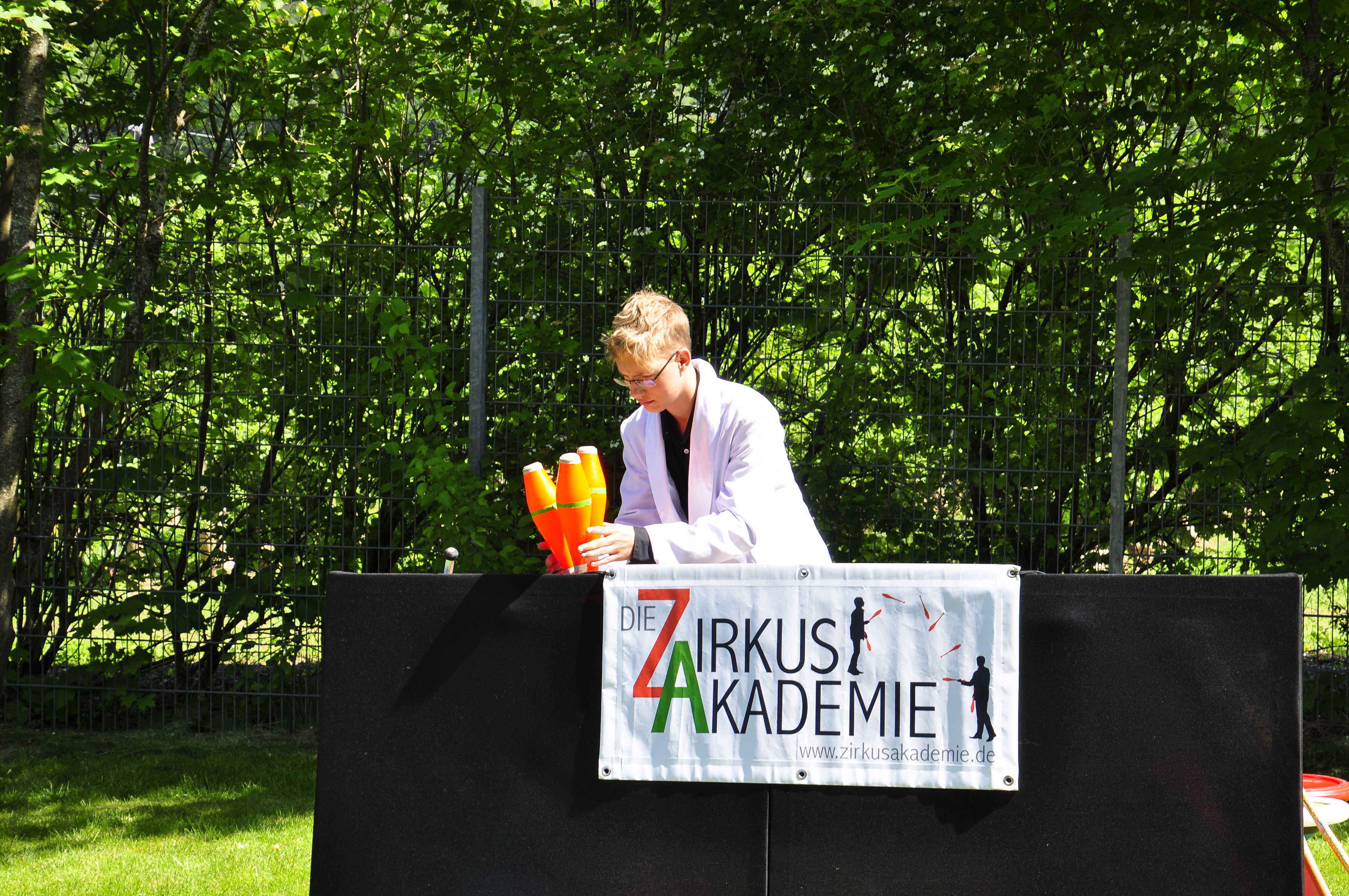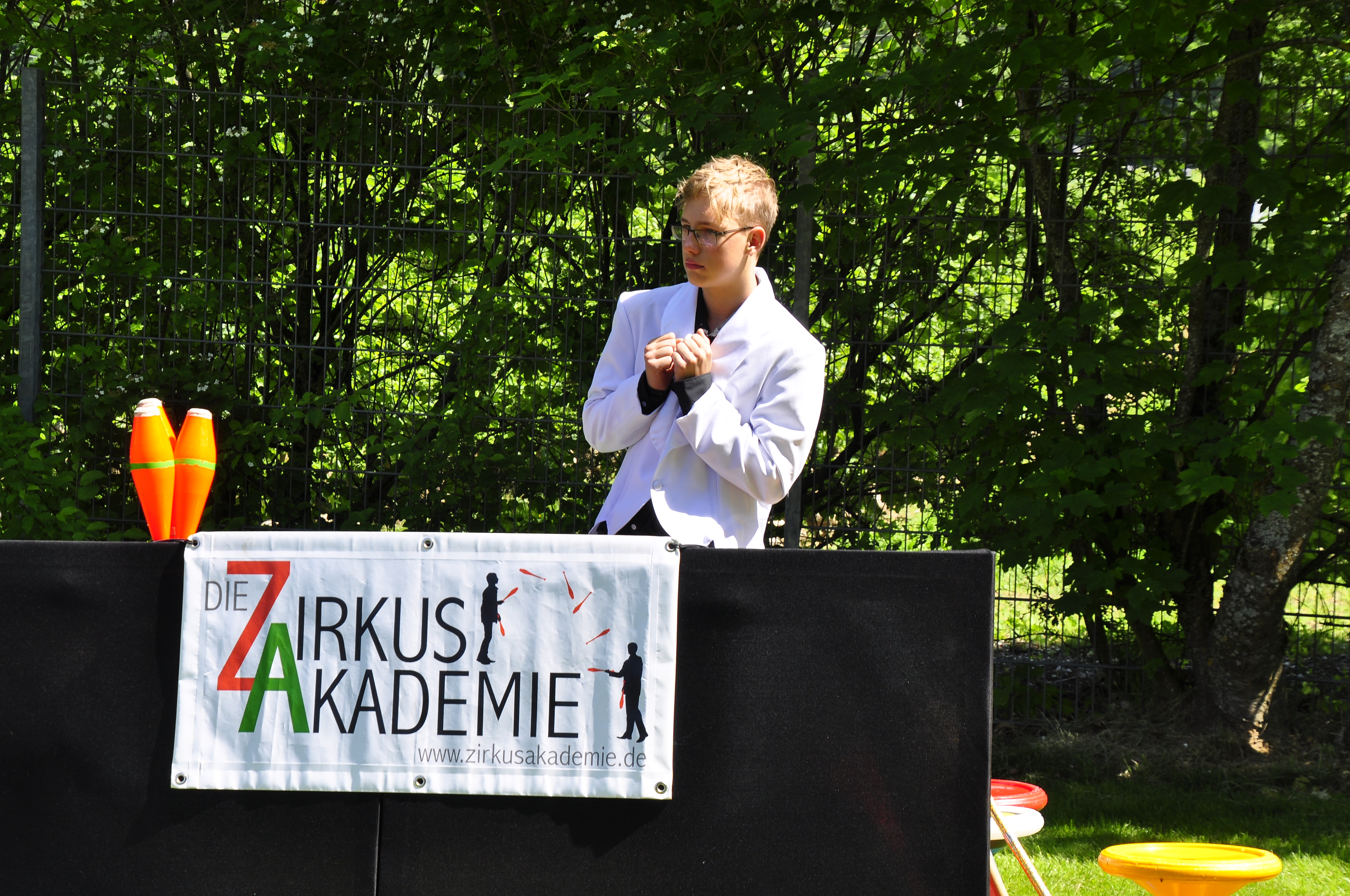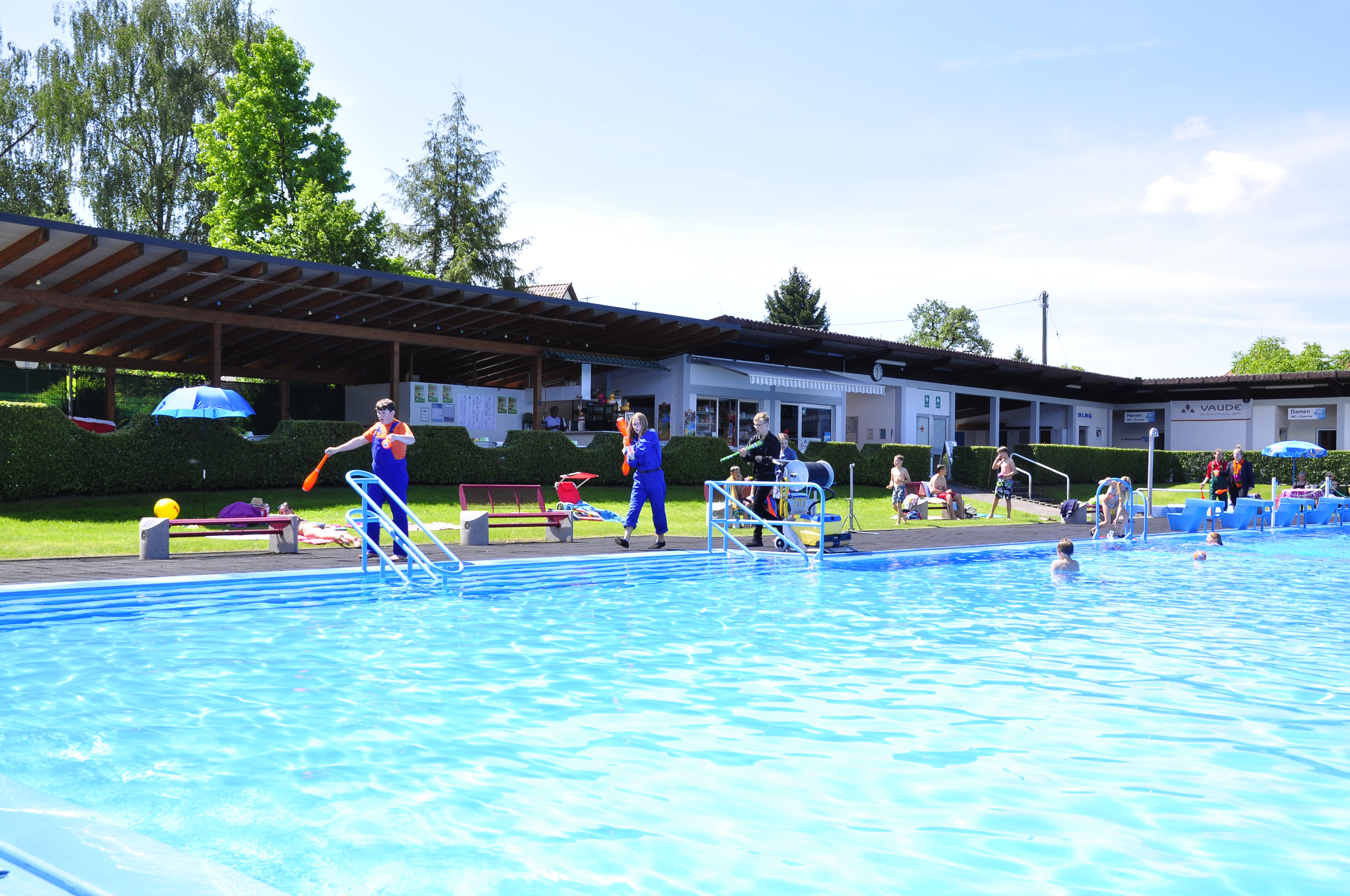 Die Zirkus-Tour-Gruppe im Bädle in Obereisenbach. Eine Vorstellung für den VauDe Kindergarten und Besucher.