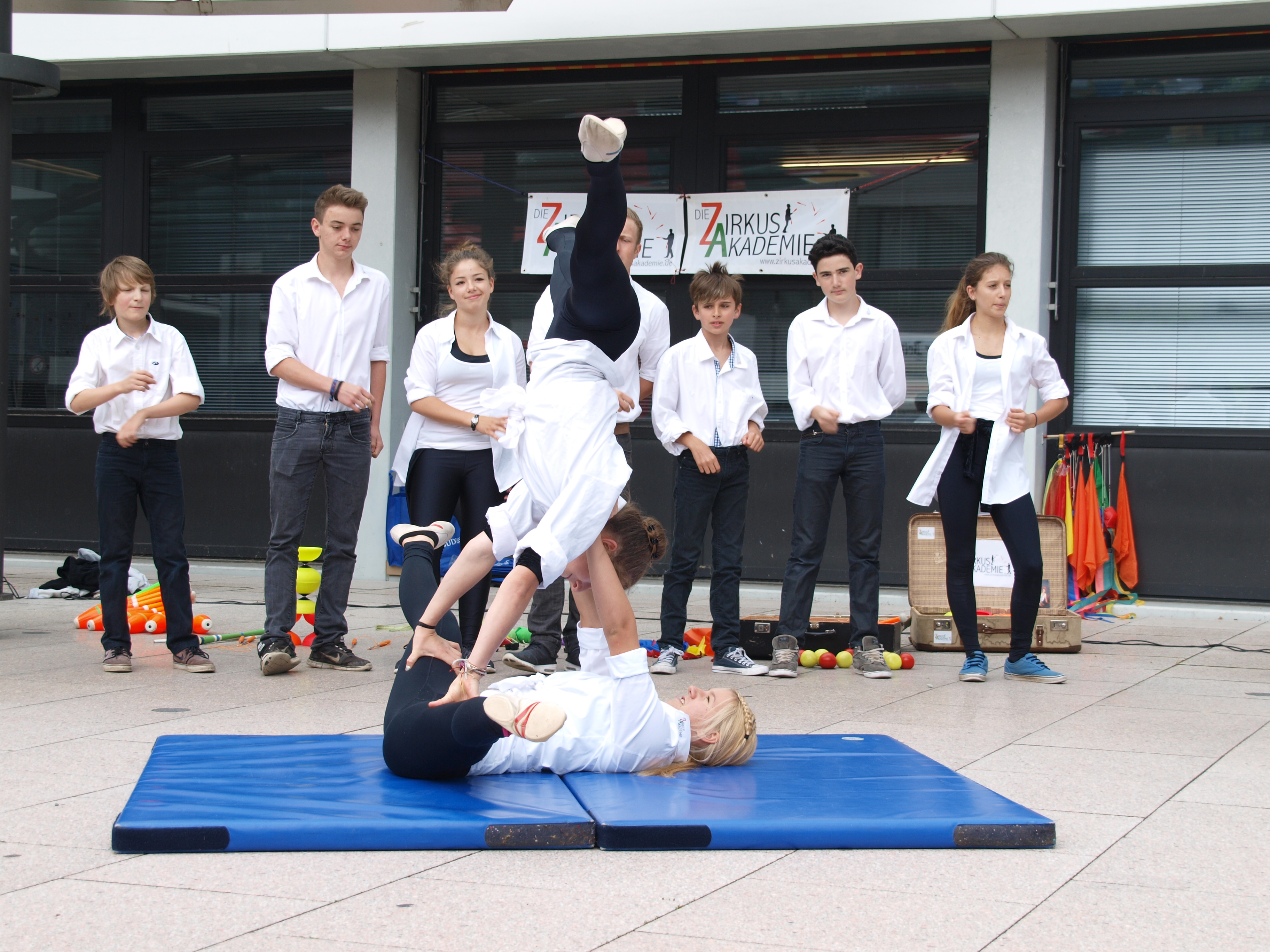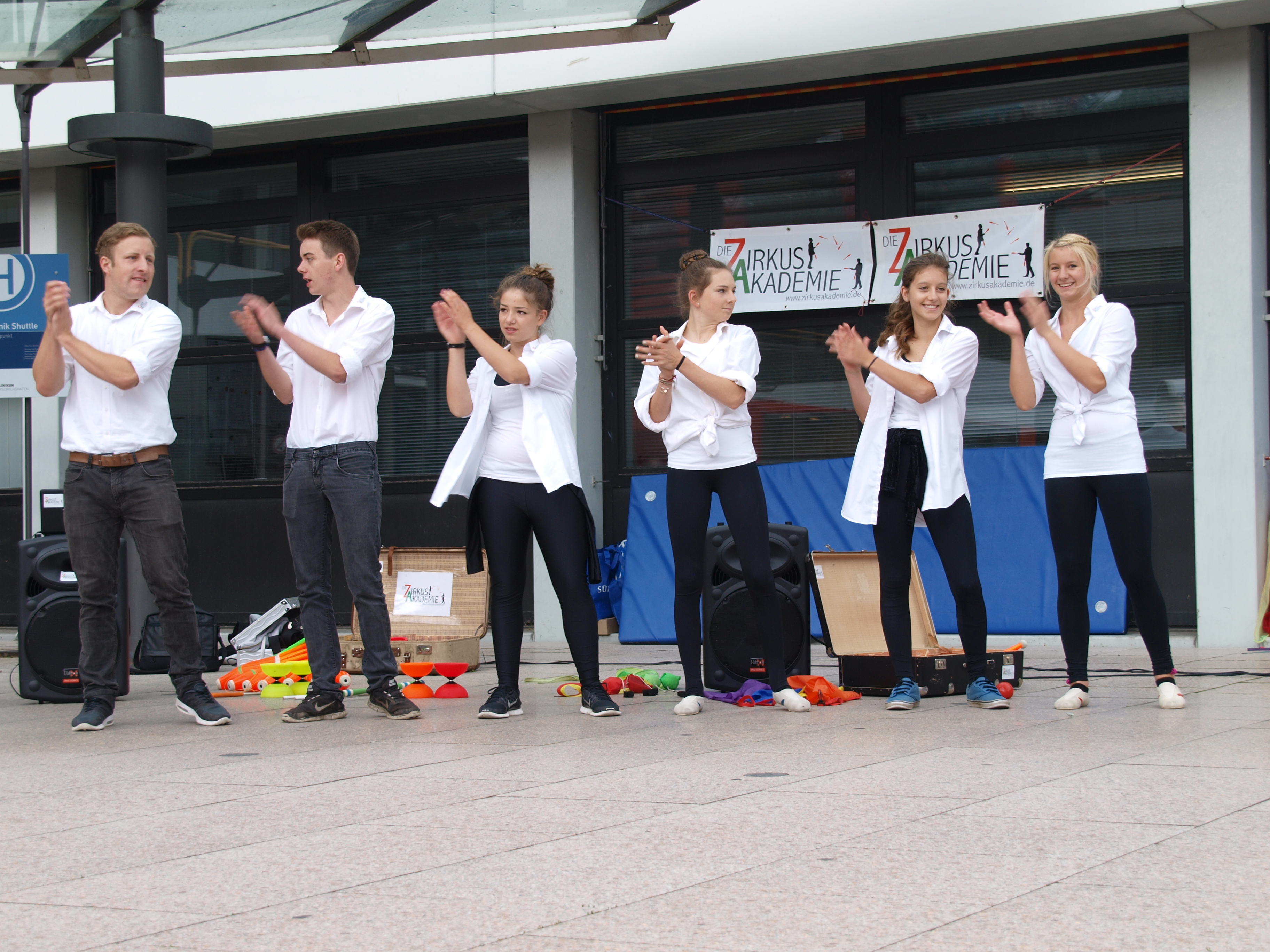 40 Jahre Klinikum in Friedrichshafen. Die ZirkusAkademie gratuliert zum Fest mit einer Blues -Brother-Show.